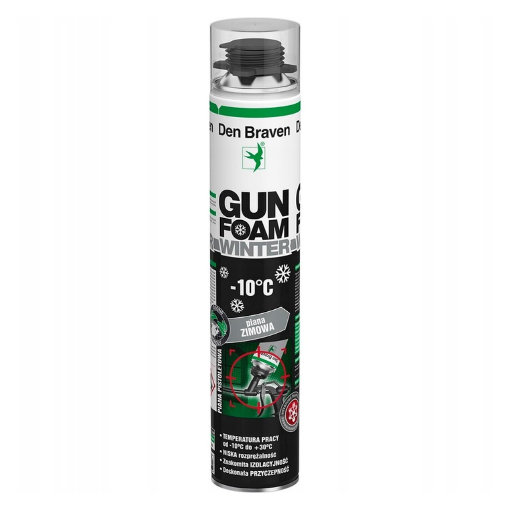Piana montażowa pistoletowa zimowa -10stopni GUNFOAM-WINTER 825ml DEN BRAVEN