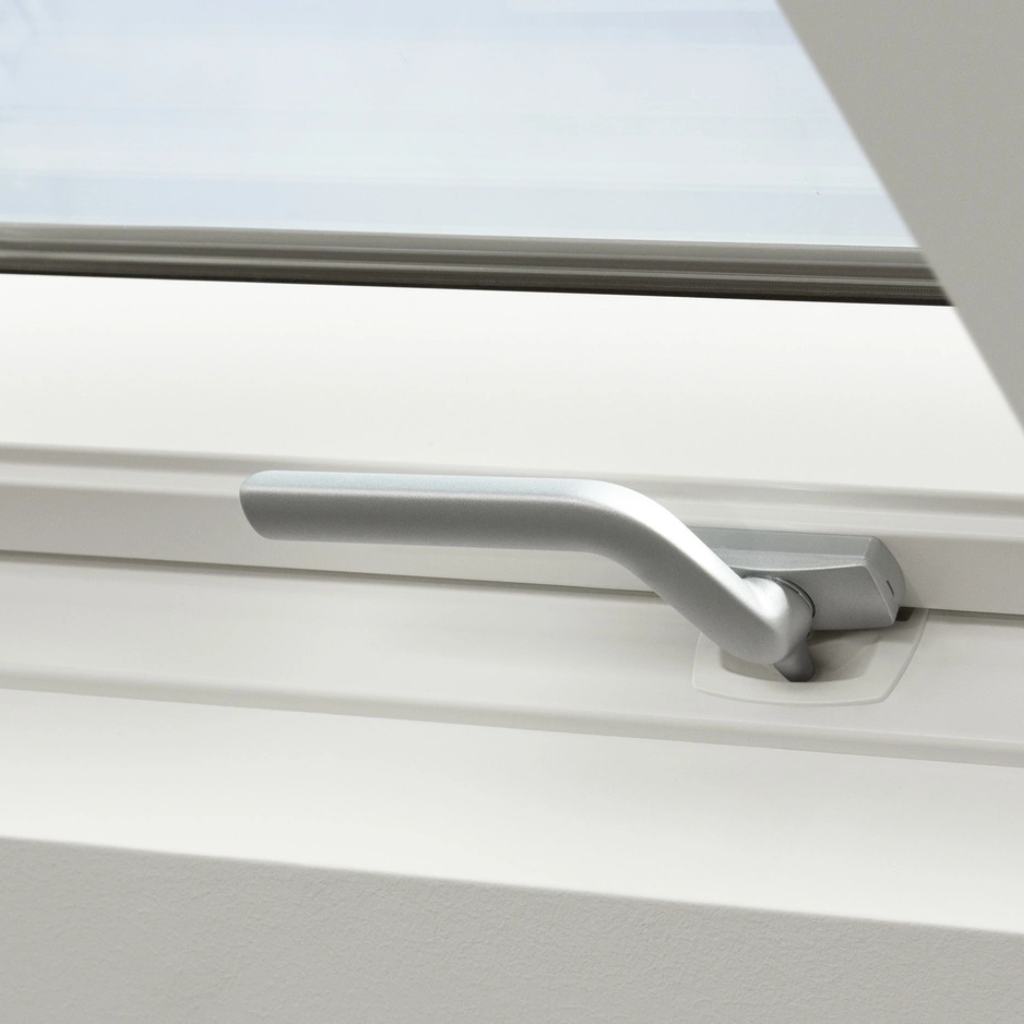 Ergonomiczny uchwyt gwarantuje łatwą obsługę okna niezależnie od tego, czy bezpośrednio pod nim znajdują się meble. Niewątpliwą zaletą produktu jest kombinacja innowacyjnej konstrukcji ThermoTechnology oraz dodatkowej uszczelki. Takie połączenie gwarantuje atrakcyjne parametry izolacyjne, co przekłada się na niższe rachunki za energię. Dodatkowa uszczelka zapewnia wyższą dźwiękochłonność, dzięki czemu warunki do spania czy odpoczynku są bardziej komfortowe.