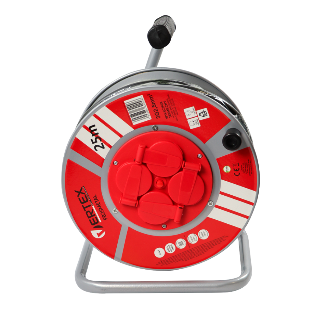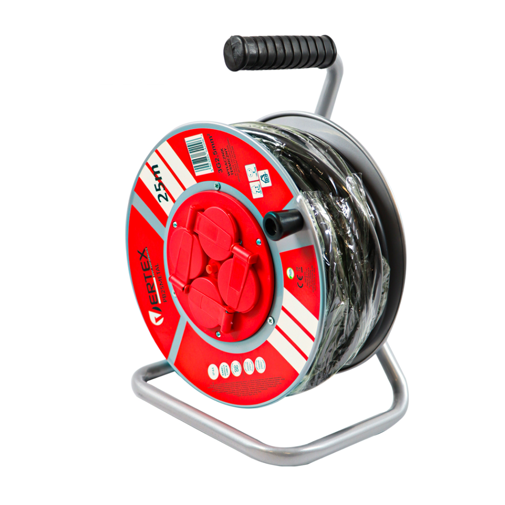 VERTEX Przedłużacz elektryczny 3×2,5m2 bębnowy 25m 4 gniazda IP44