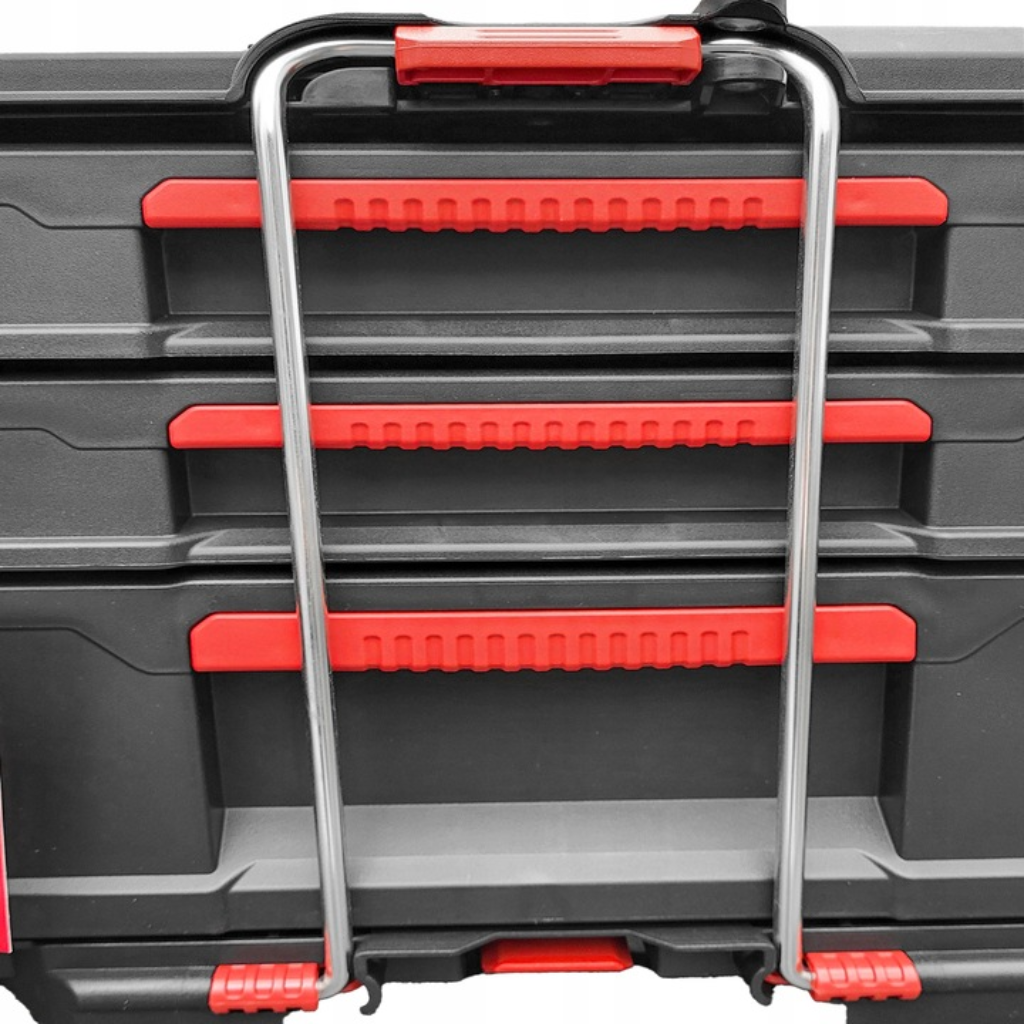 - Każda skrzynka z szufladami zawiera regulowane przegrody, które umożliwiają wygodne uporządkowanie i przechowywanie różnych akcesoriów oraz narzędzi ręcznych.
