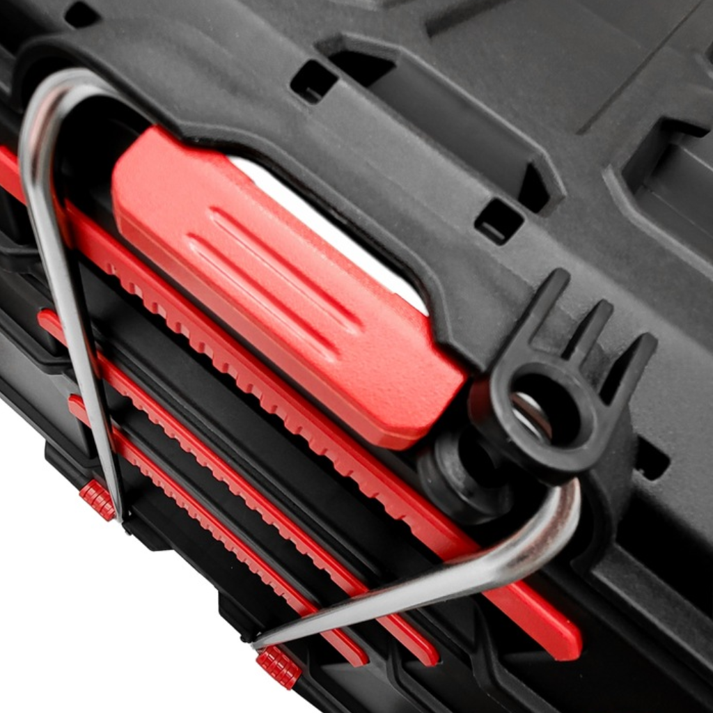 - Skrzynka narzędziowa PACKOUT™ z szufladami umożliwia łatwy dostęp do narzędzi, nawet jeśli znajduje się na samym dole wieży złożonej z kilku skrzyń.