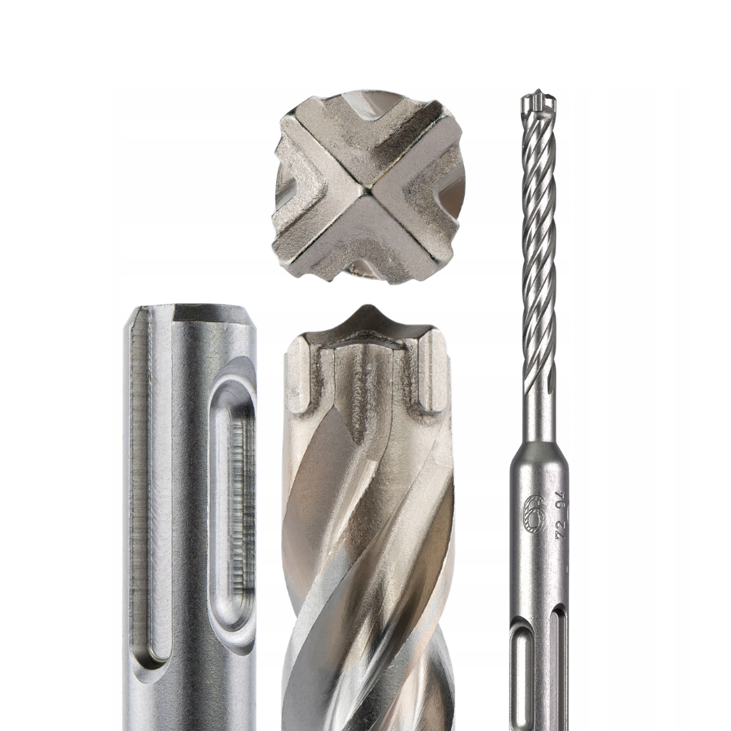 - Cztery symetryczne krawędzie skrawające w odstępach 90° gwarantują doskonale okrągłe otwory do mocowania kotew oraz redukcję zakleszczania się wiertła przy natrafieniu na pręt zbrojeniowy