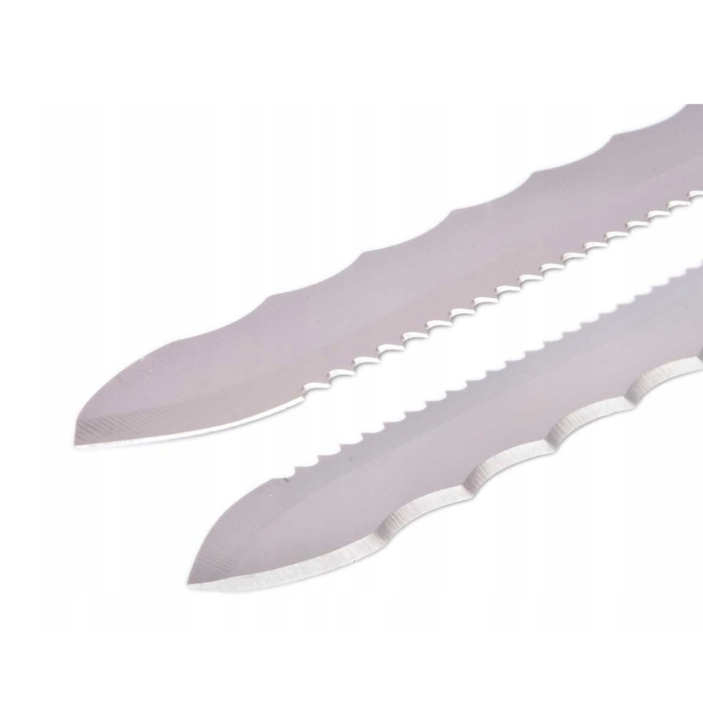 - Nóż do wełny mineralnej oraz styropianu posiada specjalnie szlifowane ząbki, umożliwiające cięcie różnych materiałów izolacyjnych.