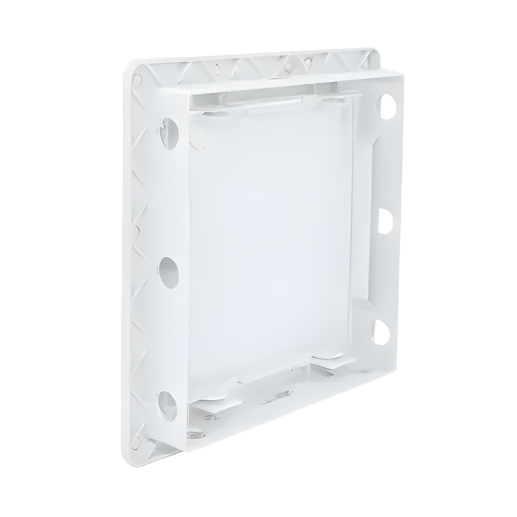 Drzwiczki rewizyjne wykonane z wysokiej jakości, śnieżnobiałego tworzywa typu ABS. Mają uniwersalną konstrukcję klapy i ramki dzięki czemu w razie potrzeby można zmienić kierunek otwierania, nawet po zamontowaniu w ścianie